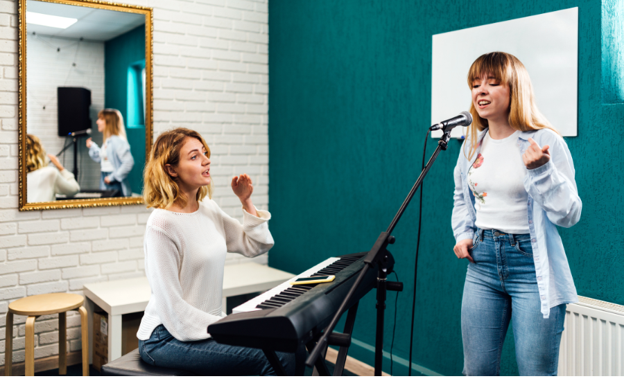A rich, professional tone comes from using your vocal resonators efficiently. Instructors guide you on adjusting mouth shape, tongue position, and soft palate placement to achieve a fuller sound.